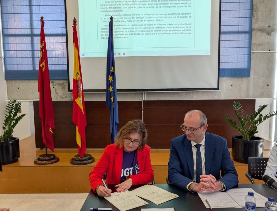 Toñi Del Vas, responsable de Enseñanza de UGT Servicios Públicos RM, firma el acuerdo 17/03/26 Las organizaciones sindicales apoyan de forma unánime el acuerdo del ...