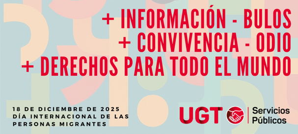 Este mes de diciembre, en UGT Servicios Públicos estamos llevando a cabo la campaña + Información – Bulos, + Convivencia – Odio, + Derechos para todas las […]