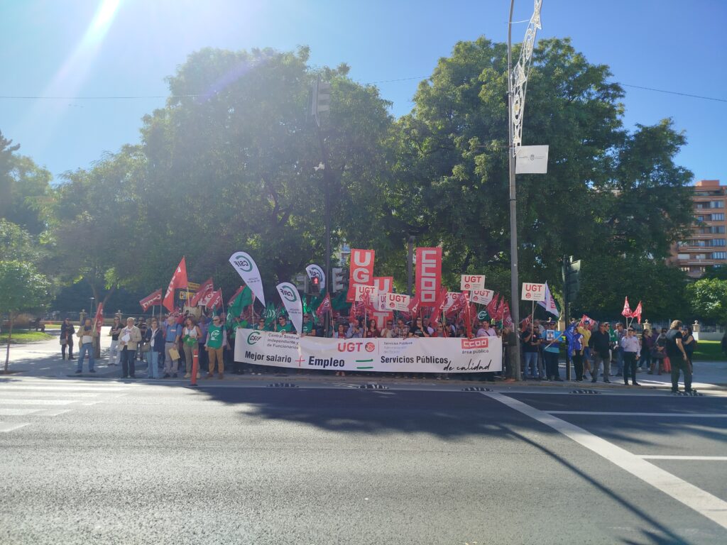 UGT Servicios Públicos, el Área Pública de CCOO y CSIF han convocado concentraciones hoy, 30 de octubre, frente al Ministerio para la Transformación Digital y de la Función Pública, así como ante las Delegaciones y Subdelegaciones del Gobierno en toda España, por unos servicios públicos de calidad, incrementos salariales, más empleo y mejora de las condiciones laborales para más de tres millones y medio de empleadas y empleados públicos. Esta movilización además responde a la urgente necesidad de defender el Estado del Bienestar, amenazado por el deterioro progresivo de los servicios públicos.