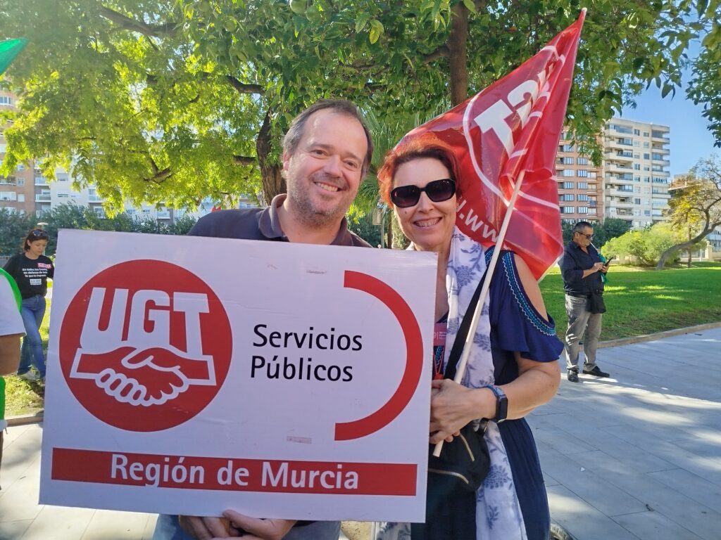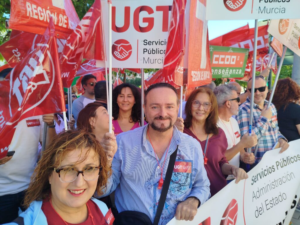 Durante la movilización celebrada esta mañana en Murcia, el secretario general de UGT Servicios Públicos Región de Murcia, Antonio Martínez Peñaranda, ha asegurado UGT no va a permitir que mientras la economía está en alza según la información del propio Gobierno : “Los empleados públicos vuelvan a sufrir el deterioro en sus nóminas; no podemos permitir que los empleados públicos seamos, una vez más, castigados”.