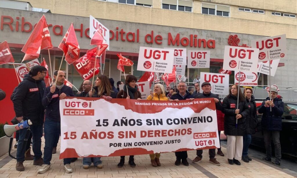El sector, en el que trabajan cerca de 7000 profesionales en la Región de Murcia se encuentra, actualmente, bajo el amparo del Estatuto de los Trabajadores después de que el convenio, sin ultra actividad, decayera hace ya 15 años. CCOO y UGT denuncian que la negociación colectiva del convenio de establecimientos sanitarios, hospitalización y asistencia entre estos sindicatos y la patronal Unión Murcia de Hospitales se encuentra en una situación crítica.